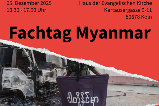 Am 5. Dezember richten wir gemeinsam mit der Melanchthon-Akademie einen Fachtag zu Myanmar aus.